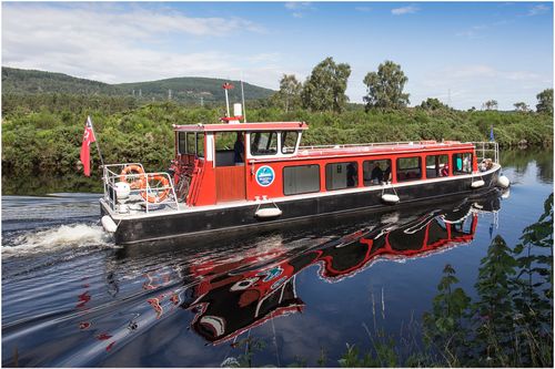 'Seagull Highland Cross' is the specially designed boat which runs the route from Torvean to Dochgarroch.